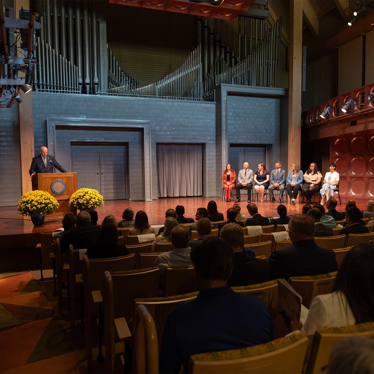 At the fourth annual University Leadership Honors in September 2025, SDSU honored its newest cohort of endowment holders — the highest honor the university can bestow upon a faculty or staff member. The seven individuals and the donors who made their positions possible were recognized at the event.